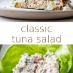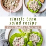A classic tuna salad recipe is one of my go-to easy lunches (salmon salad is a close competitor). Not only does it make for a super delicious meal, but it’s packed with protein and keeps me satisfied for hours. Sometimes, I’ll make tuna salad with eggs or tuna and chickpea salad for even more protein, but I also love the simplicity of a traditional tunafish salad.