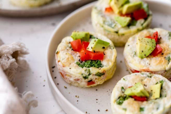I love taking time to meal prep on the weekends, and egg muffins and/or cottage cheese egg bakes almost always make it onto the menu. They’re easy to make and convenient, with endless flavor possibilities (