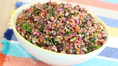 This salad is amazing and a great way to get lots of nutrition in one bowl! I didn’t have cauliflower or red cabbage, subbed in raw beets and Napa cabbage from my CSA haul. The result was delicious. Thanks again Dani for another hit!ย